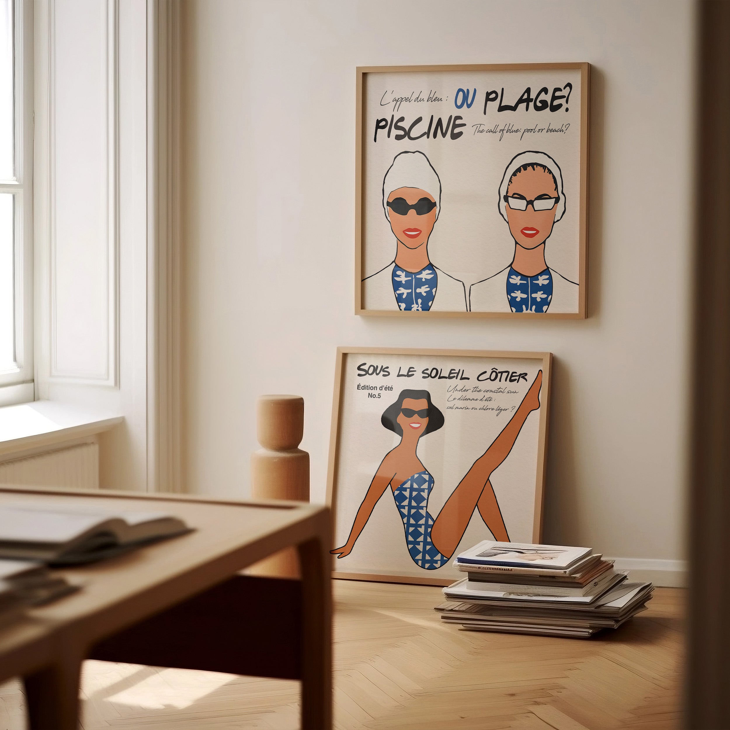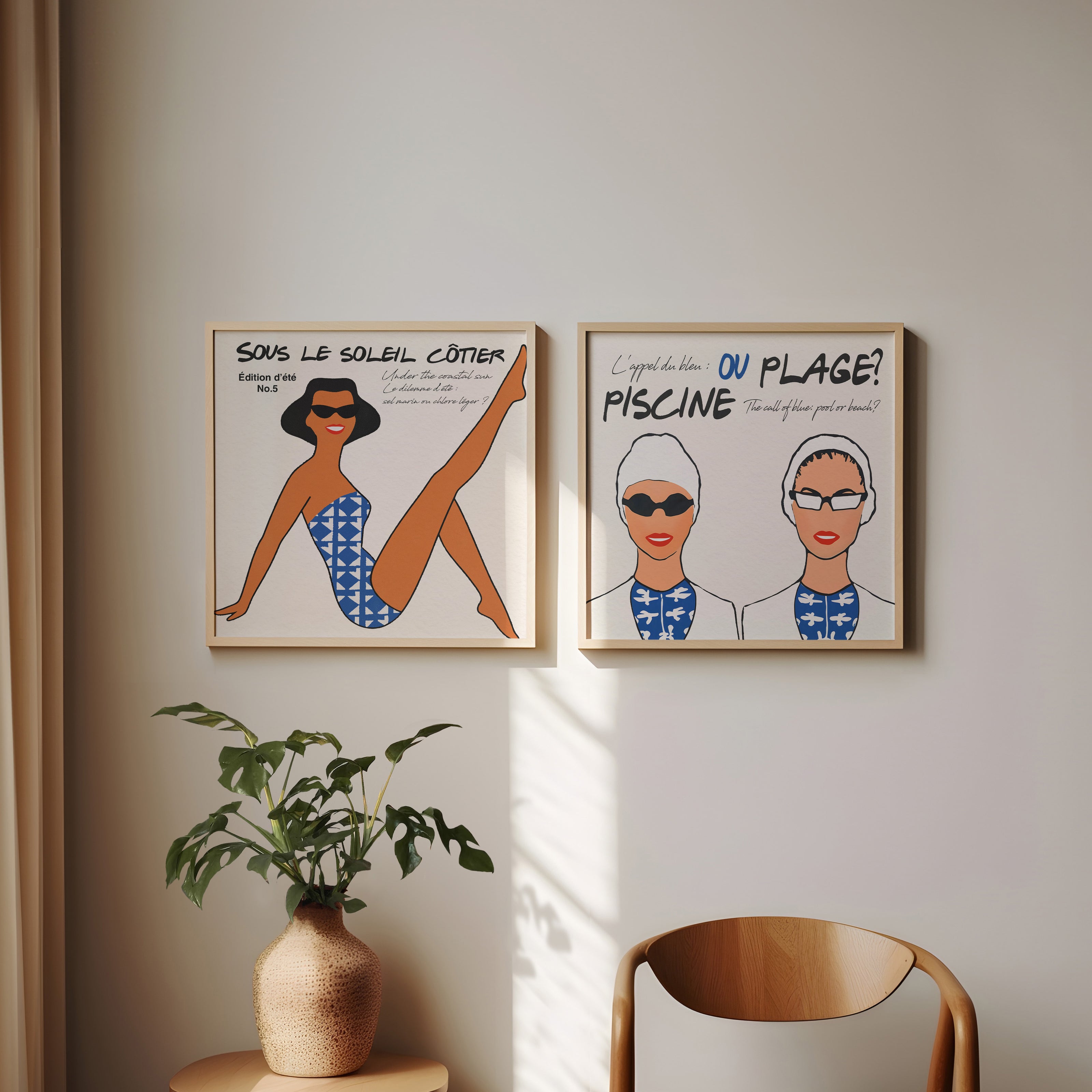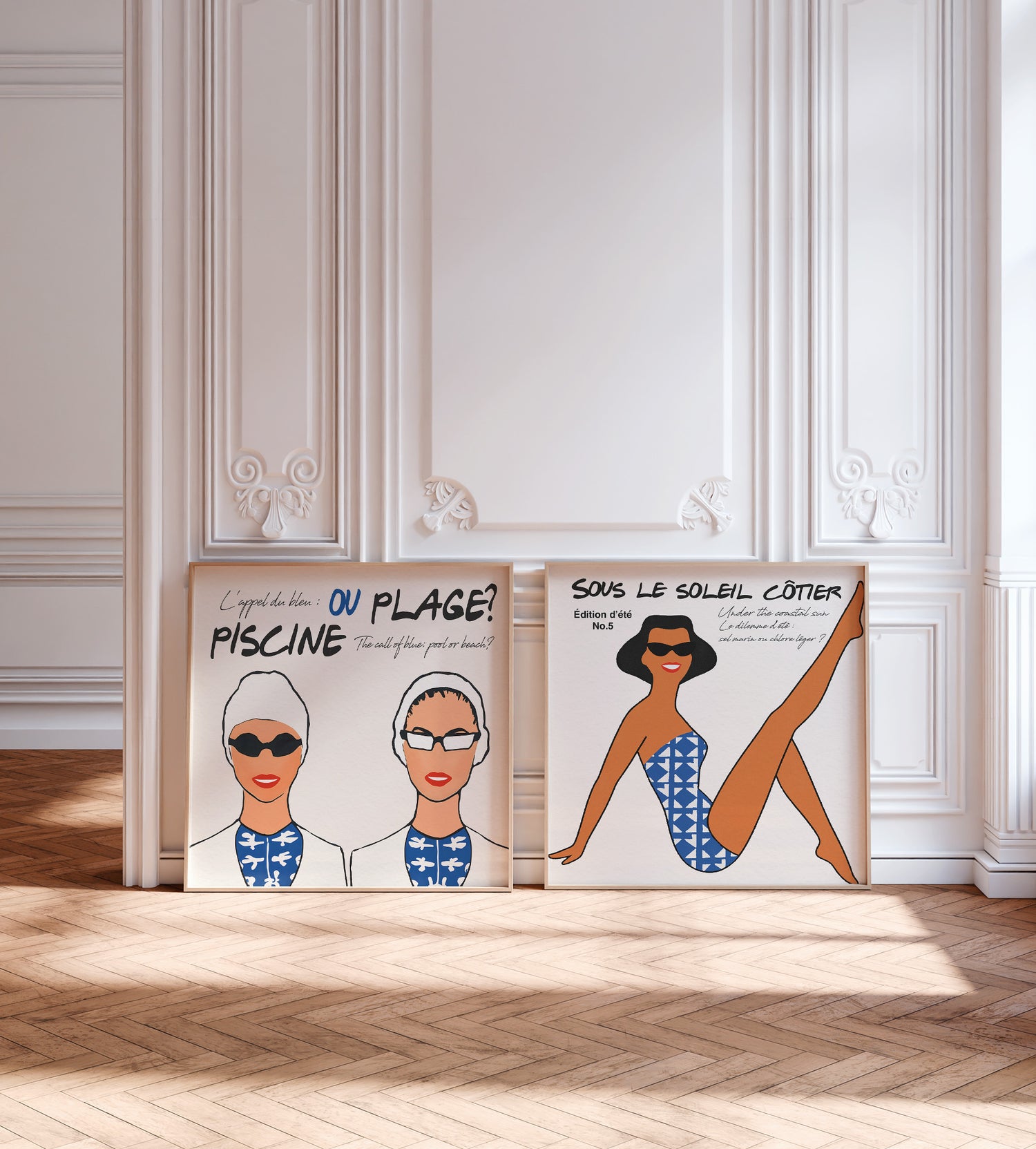 "L’appel du bleu : Piscine ou Plage?" ("The call of blue: Pool or Beach?")