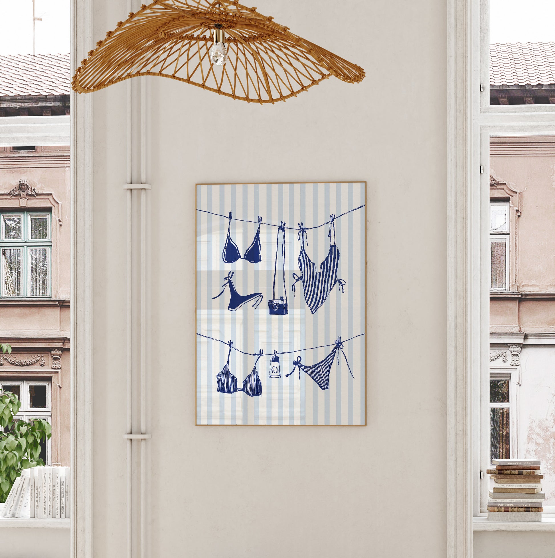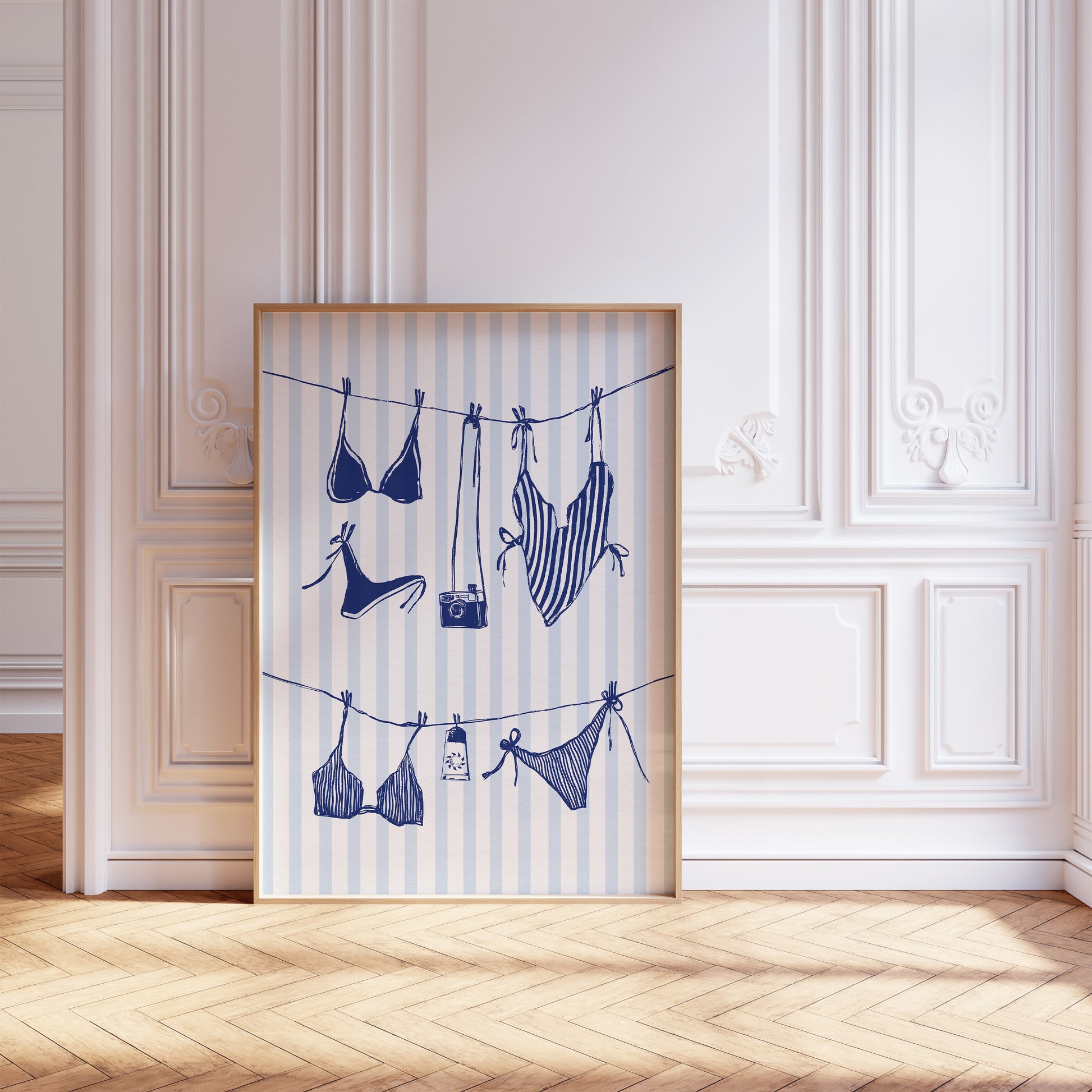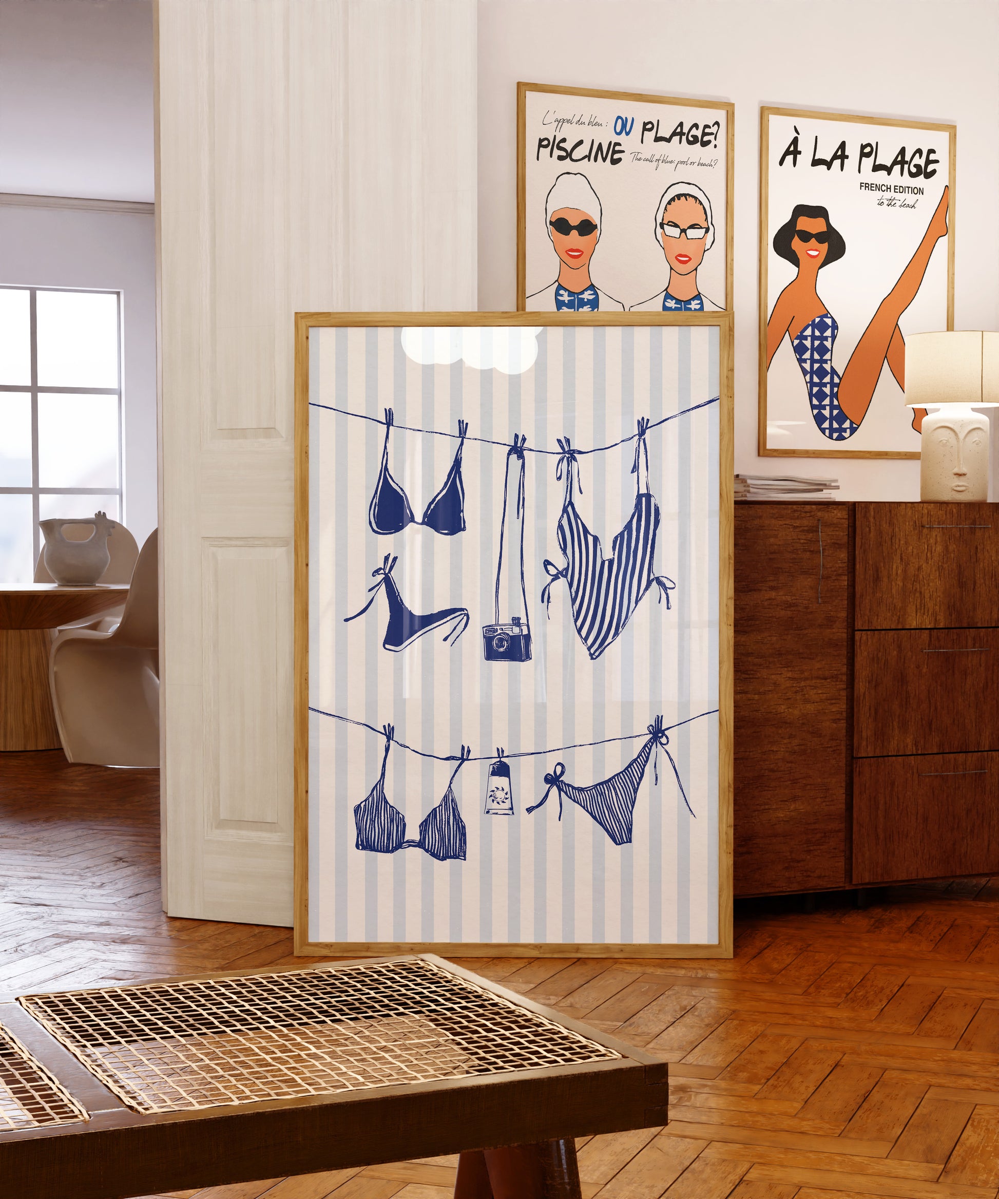 With black & white aesthetic, retro swimwear, and a chic French twist, this artwork brings a splash of mid-century charm and Riviera glamour to any space. Perfect for lovers of sun, style, and witty design.