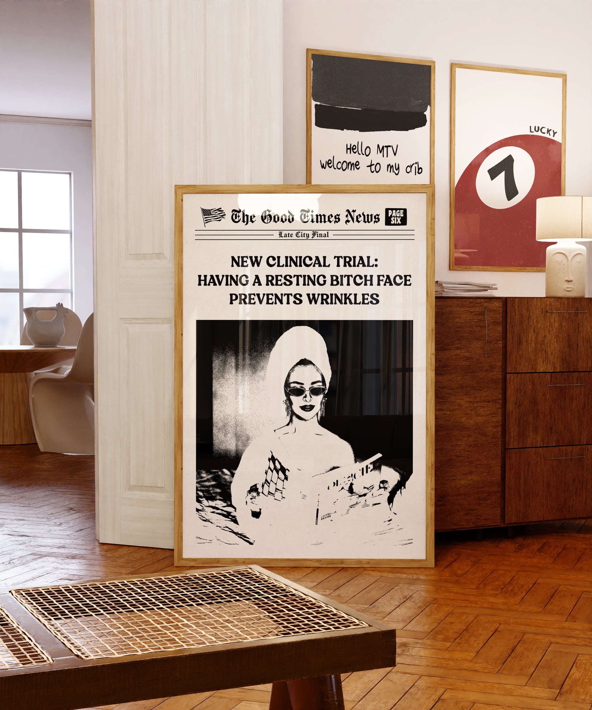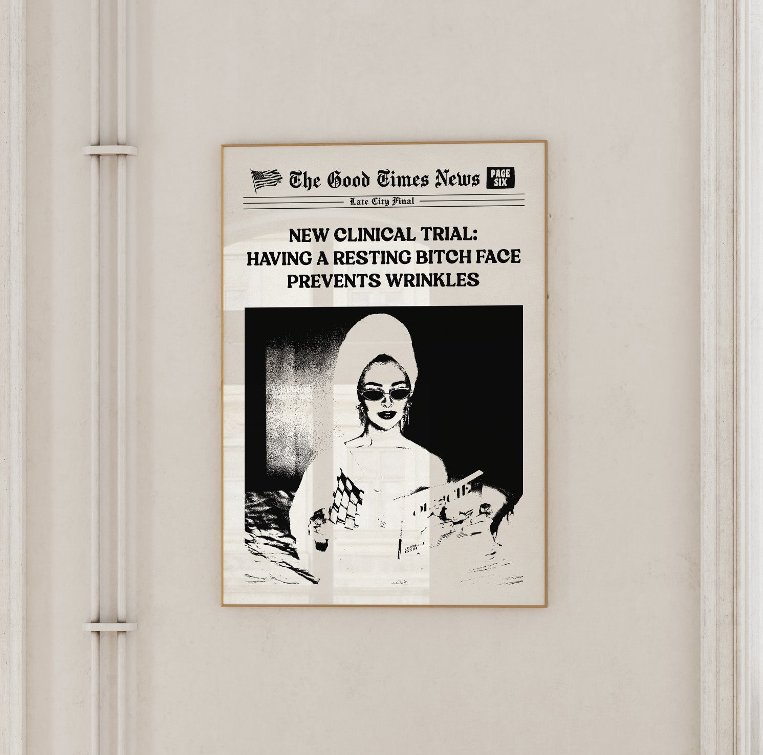 Poster featuring an iconic black & white photograph in the style of a vintage newspaper, accompanied by smaller text elements. Made in black and white colors.