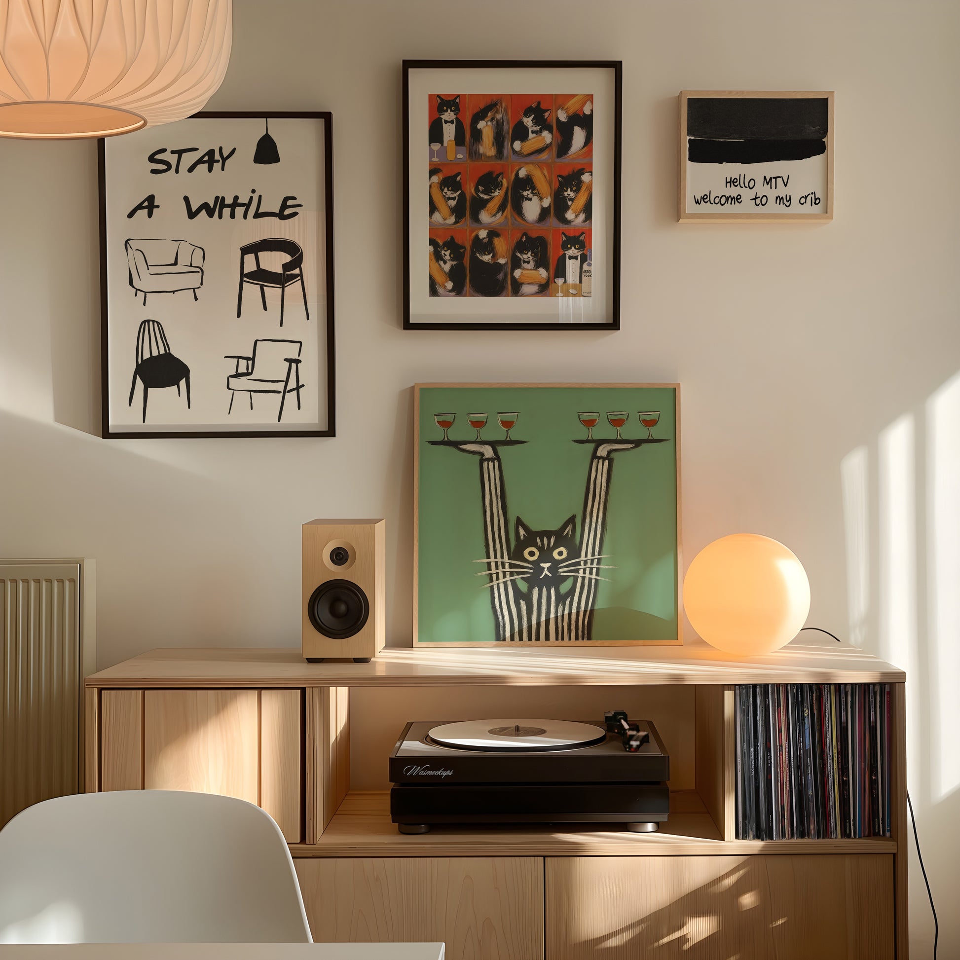 Fine art giclée print, available in three different formats: digital download, printed poster and wooden framed poster.